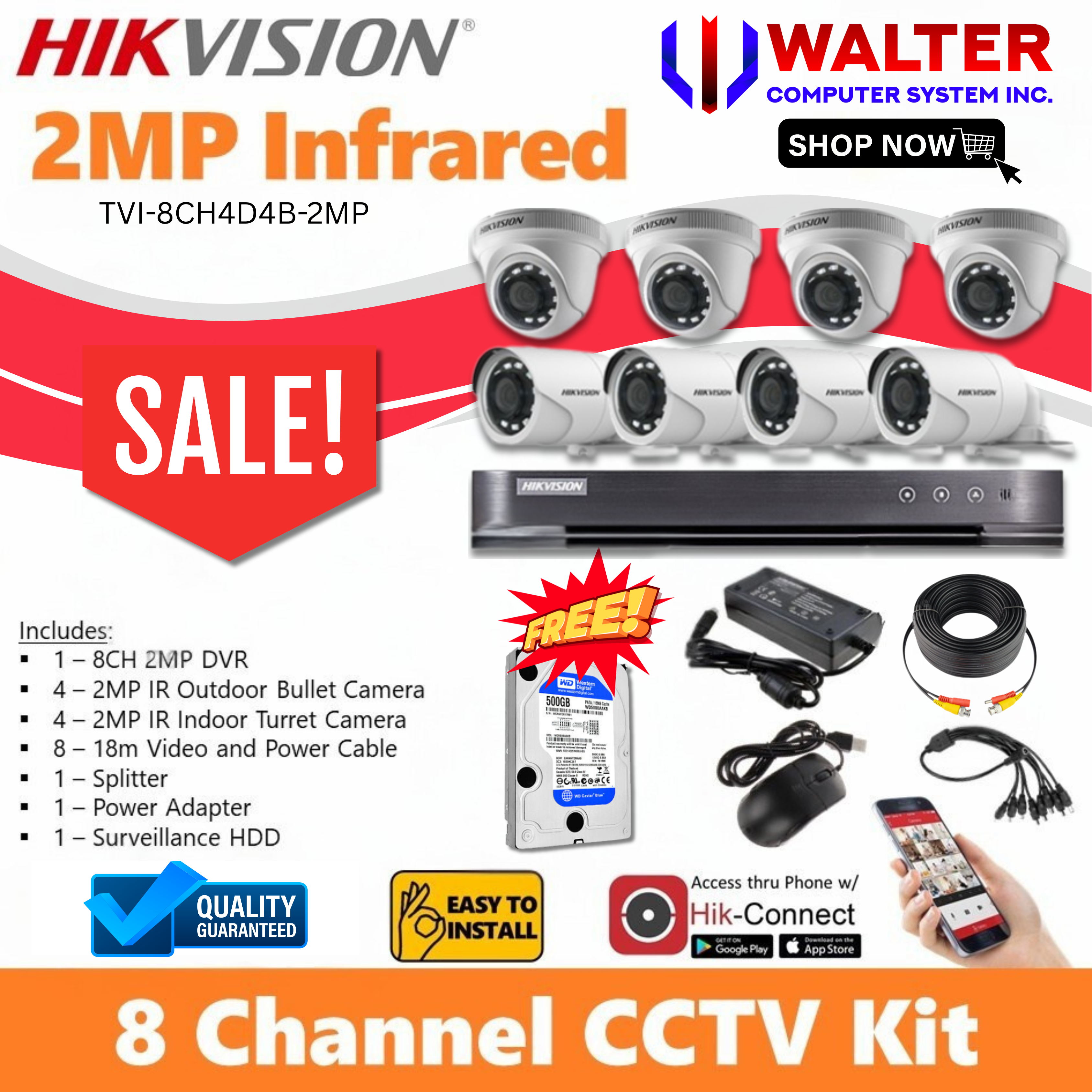 PACKAGE INCLUSIONS FOR Turbo HD TVI-8CH4D4B-2MP KIT
